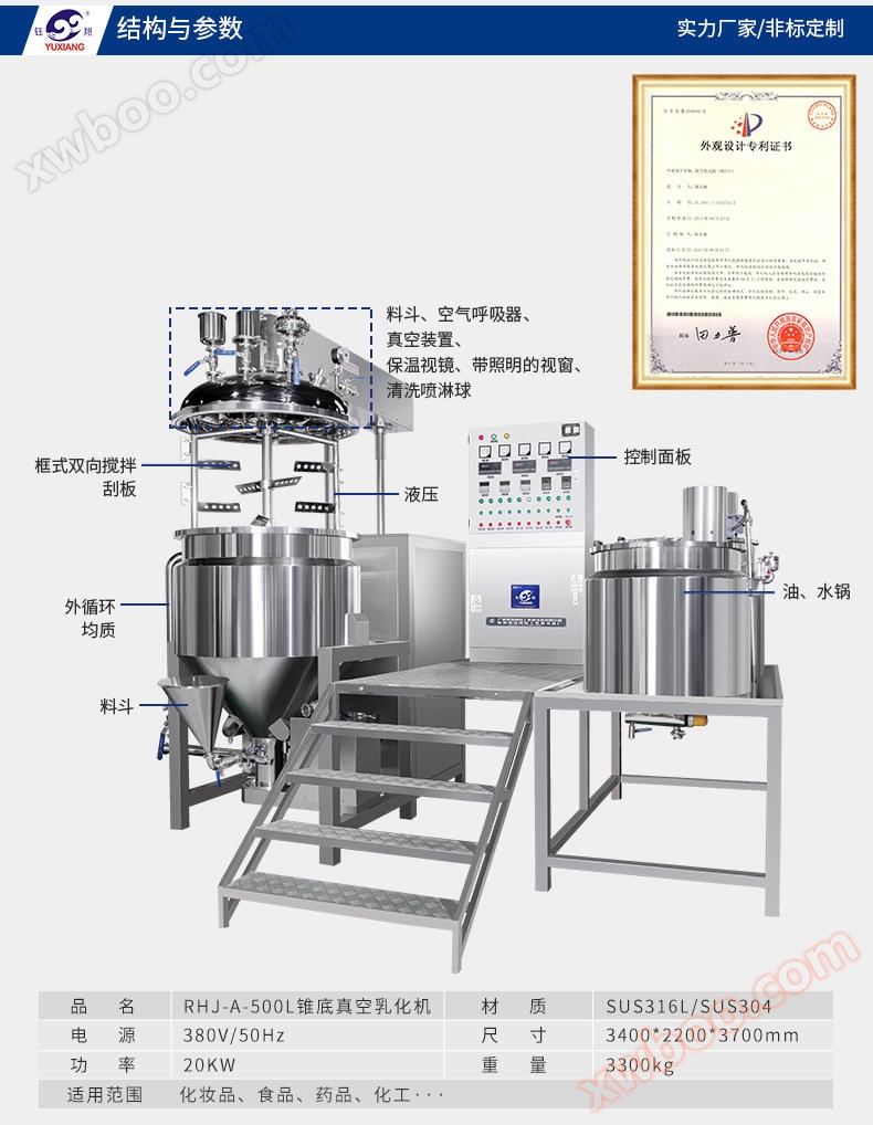 ◆ Die Vielfalt der Arten von Vakuum-Homogenisierungsemulgatoren, die von unserem Unternehmen hergestellt werden, besteht darin, dass das Homogenisierungssystem obere Homogenität, untere Homogenität, innere und äußere Kreislaufhomogenität, das Rührensystem ist in einer Richtung und in zwei Richtungen gerührt, die Schraubenrührung; Hebesystem Einzelzylinder- und Doppelzylinder-Hebesystem und kann eine Vielzahl von Produkten anpassen, die den Anforderungen des Kunden entsprechen;