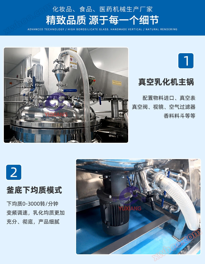 ◆ Die Vielfalt der Arten von Vakuum-Homogenisierungsemulgatoren, die von unserem Unternehmen hergestellt werden, besteht darin, dass das Homogenisierungssystem obere Homogenität, untere Homogenität, innere und äußere Kreislaufhomogenität, das Rührensystem ist in einer Richtung und in zwei Richtungen gerührt, die Schraubenrührung; Hebesystem Einzelzylinder- und Doppelzylinder-Hebesystem und kann eine Vielzahl von Produkten anpassen, die den Anforderungen des Kunden entsprechen;